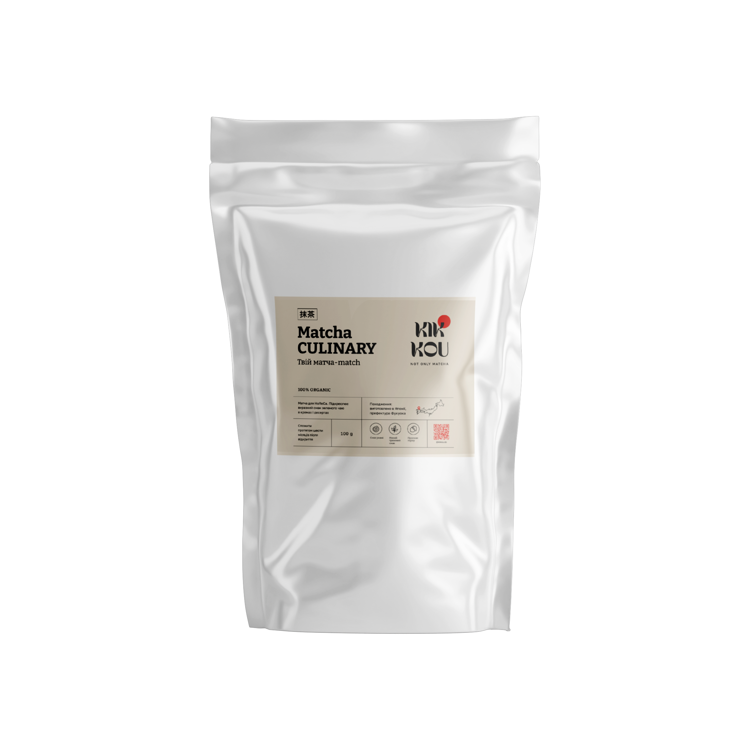 Кулінарний матча — це вибір тих, хто любить експериментувати на кухні, цінує користь та естетику в рецептах. Порошковий чай для кулінарії має темно-зелений колір і трав'янистий смак із гіркуватістю. Гармонійно доповнює випічку, десерти та напої, надаючи їм характерний відтінок і новий рівень складності смаку. Містить корисні антиоксиданти.
